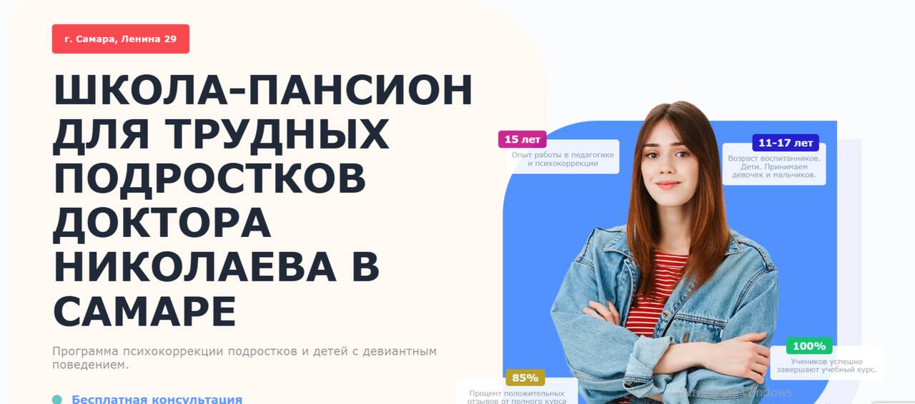 Школа-пансион для трудных подростков доктора Николаева по адресу Ново-Садовая улица, 158, Самара в дальнейшем Организация, размещена в следующих категориях: