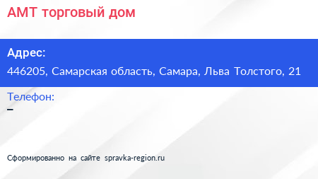 АМТ, торговый дом по адресу 446205, Самарская область, Самара, Льва Толстого, 21 в дальнейшем Организация, размещена в следующих категориях: