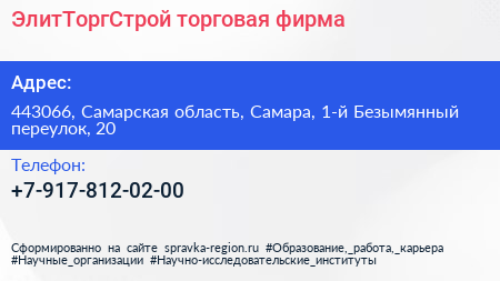 ЭлитТоргСтрой, торговая фирма по адресу 443066, Самарская область, Самара, 1-й Безымянный переулок, 20 в дальнейшем Организация, размещена в следующих категориях: