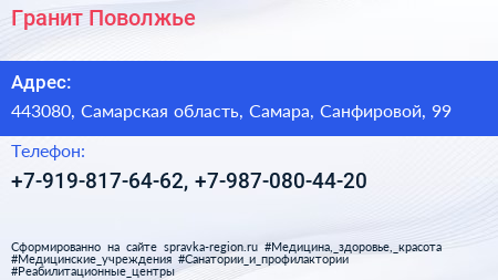 Гранит-Поволжье по адресу 443080, Самарская область, Самара, Санфировой, 99 в дальнейшем Организация, размещена в следующих категориях: