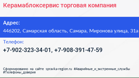 Керамаблоксервис, торговая компания по адресу 446202, Самарская область, Самара, Миронова улица, 31а в дальнейшем Организация, размещена в следующих категориях: