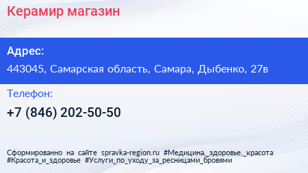 Керамир, магазин по адресу 443045, Самарская область, Самара, Дыбенко, 27в в дальнейшем Организация, размещена в следующих категориях: