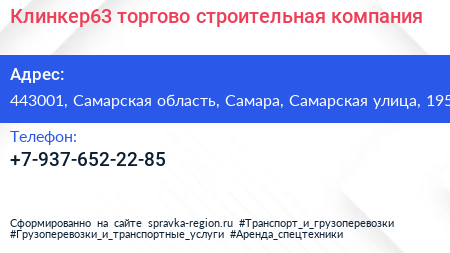 Клинкер63, торгово-строительная компания по адресу 443001, Самарская область, Самара, Самарская улица, 195 в дальнейшем Организация, размещена в следующих категориях: