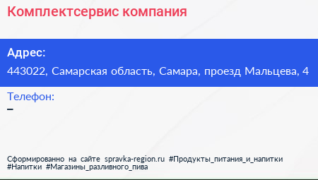 Комплектсервис, компания по адресу 443022, Самарская область, Самара, проезд Мальцева, 4 в дальнейшем Организация, размещена в следующих категориях: