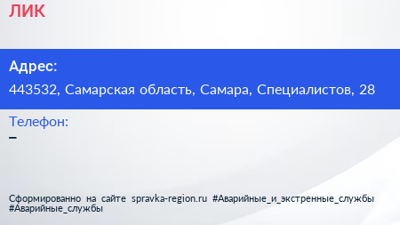 ЛИК по адресу 443532, Самарская область, Самара, Специалистов, 28 в дальнейшем Организация, размещена в следующих категориях: