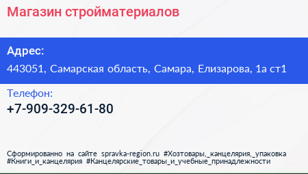 Магазин стройматериалов по адресу 443051, Самарская область, Самара, Елизарова, 1а ст1 в дальнейшем Организация, размещена в следующих категориях: