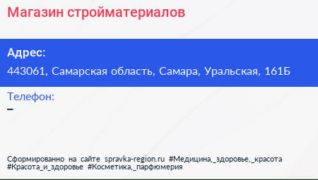 Магазин стройматериалов по адресу 443061, Самарская область, Самара, Уральская, 161Б в дальнейшем Организация, размещена в следующих категориях: