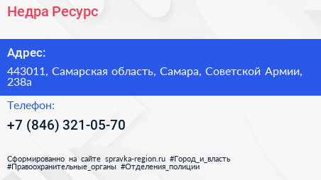 Недра Ресурс по адресу 443011, Самарская область, Самара, Советской Армии, 238а в дальнейшем Организация, размещена в следующих категориях: