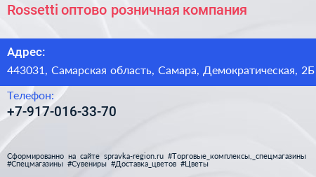 Rossetti, оптово-розничная компания по адресу 443031, Самарская область, Самара, Демократическая, 2Б в дальнейшем Организация, размещена в следующих категориях: