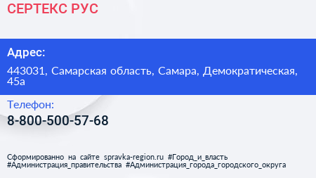 СЕРТЕКС РУС по адресу 443031, Самарская область, Самара, Демократическая, 45а в дальнейшем Организация, размещена в следующих категориях:
