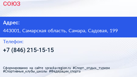 СОЮЗ по адресу 443001, Самарская область, Самара, Садовая, 199 в дальнейшем Организация, размещена в следующих категориях: