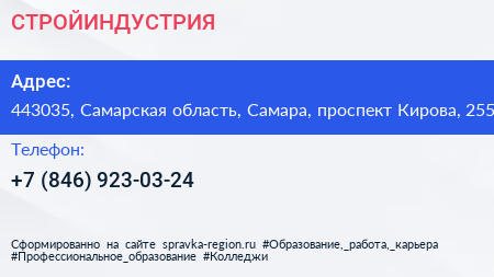 СТРОЙИНДУСТРИЯ по адресу 443035, Самарская область, Самара, проспект Кирова, 255 в дальнейшем Организация, размещена в следующих категориях: