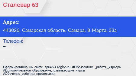 Сталевар 63 по адресу 443026, Самарская область, Самара, 8 Марта, 33а в дальнейшем Организация, размещена в следующих категориях: