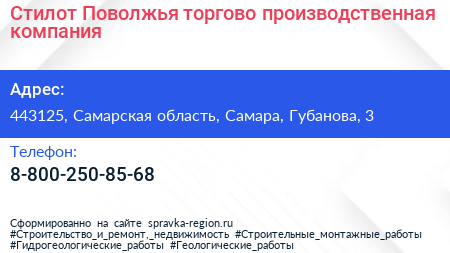 Стилот Поволжья, торгово-производственная компания по адресу 443125, Самарская область, Самара, Губанова, 3 в дальнейшем Организация, размещена в следующих категориях: