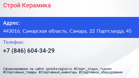 Строй Керамика по адресу 443016, Самарская область, Самара, 22 Партсъезда, 45 в дальнейшем Организация, размещена в следующих категориях:
