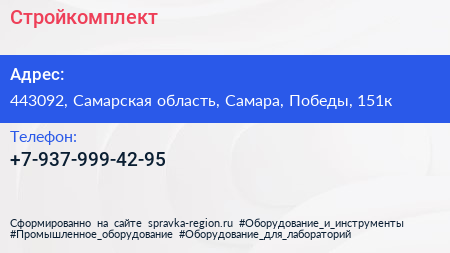 Стройкомплект по адресу 443092, Самарская область, Самара, Победы, 151к в дальнейшем Организация, размещена в следующих категориях:
