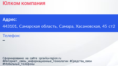 Юлком, компания по адресу 443101, Самарская область, Самара, Хасановская, 45 ст2 в дальнейшем Организация, размещена в следующих категориях: