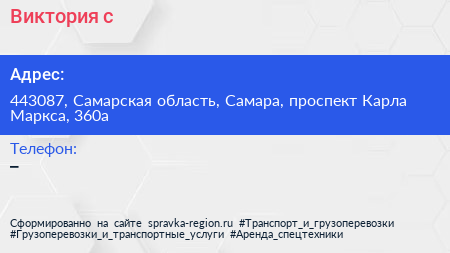Виктория с по адресу 443087, Самарская область, Самара, проспект Карла Маркса, 360а в дальнейшем Организация, размещена в следующих категориях: