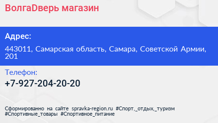 ВолгаDверь, магазин по адресу 443011, Самарская область, Самара, Советской Армии, 201 в дальнейшем Организация, размещена в следующих категориях: