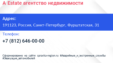 A-Estate, агентство недвижимости по адресу 191123, Россия, Санкт-Петербург, Фурштатская, 31 в дальнейшем Организация, размещена в следующих категориях: