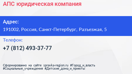 АПС, юридическая компания по адресу 191002, Россия, Санкт-Петербург, Разъезжая, 5 в дальнейшем Организация, размещена в следующих категориях: