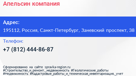 Апельсин, компания по адресу 195112, Россия, Санкт-Петербург, Заневский проспект, 38 в дальнейшем Организация, размещена в следующих категориях: