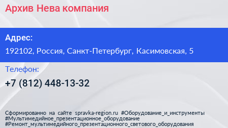 Архив Нева, компания по адресу 192102, Россия, Санкт-Петербург, Касимовская, 5 в дальнейшем Организация, размещена в следующих категориях: