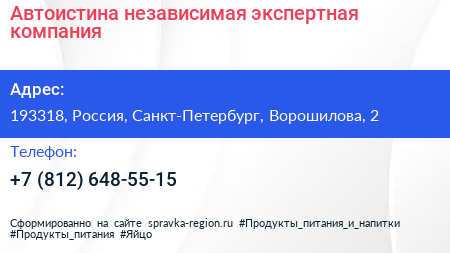 Автоистина, независимая экспертная компания по адресу 193318, Россия, Санкт-Петербург, Ворошилова, 2 в дальнейшем Организация, размещена в следующих категориях: