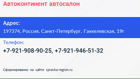 Автоконтинент, автосалон по адресу 197374, Россия, Санкт-Петербург, Гаккелевская, 19г в дальнейшем Организация, размещена в следующих категориях: