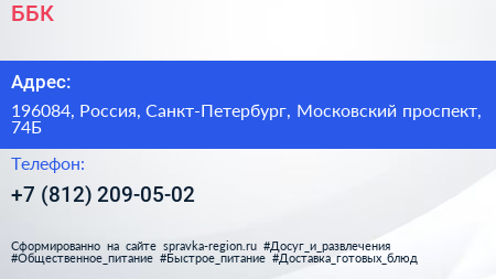 ББК по адресу 196084, Россия, Санкт-Петербург, Московский проспект, 74Б в дальнейшем Организация, размещена в следующих категориях: