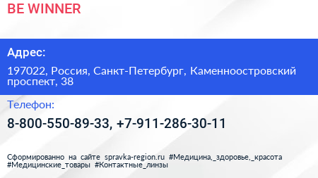 BE WINNER по адресу 197022, Россия, Санкт-Петербург, Каменноостровский проспект, 38 в дальнейшем Организация, размещена в следующих категориях: