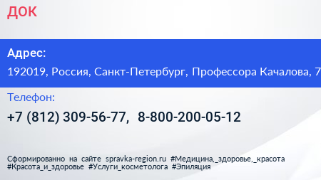 ДОК по адресу 192019, Россия, Санкт-Петербург, Профессора Качалова, 7 в дальнейшем Организация, размещена в следующих категориях: