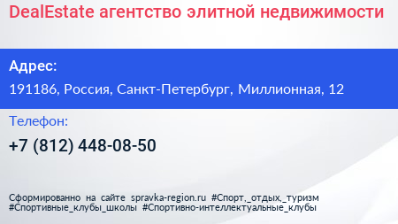 DealEstate, агентство элитной недвижимости по адресу 191186, Россия, Санкт-Петербург, Миллионная, 12 в дальнейшем Организация, размещена в следующих категориях: