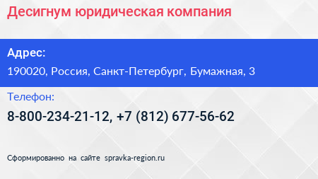 Десигнум, юридическая компания по адресу 190020, Россия, Санкт-Петербург, Бумажная, 3 в дальнейшем Организация, размещена в следующих категориях: