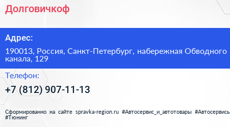 Долговичкоф по адресу 190013, Россия, Санкт-Петербург, набережная Обводного канала, 129 в дальнейшем Организация, размещена в следующих категориях: