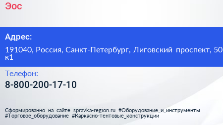 Эос по адресу 191040, Россия, Санкт-Петербург, Лиговский проспект, 50 к1 в дальнейшем Организация, размещена в следующих категориях: