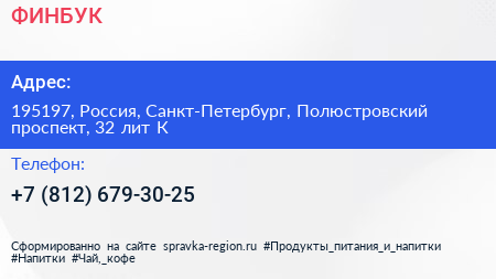 ФИНБУК по адресу 195197, Россия, Санкт-Петербург, Полюстровский проспект, 32 лит К в дальнейшем Организация, размещена в следующих категориях: