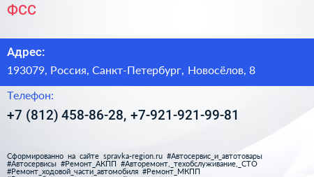ФСС по адресу 193079, Россия, Санкт-Петербург, Новосёлов, 8 в дальнейшем Организация, размещена в следующих категориях: