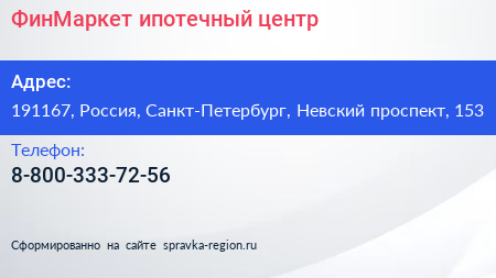 ФинМаркет, ипотечный центр по адресу 191167, Россия, Санкт-Петербург, Невский проспект, 153 в дальнейшем Организация, размещена в следующих категориях: