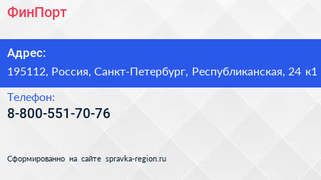 ФинПорт по адресу 195112, Россия, Санкт-Петербург, Республиканская, 24 к1 в дальнейшем Организация, размещена в следующих категориях: