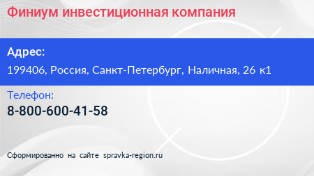 Финиум, инвестиционная компания по адресу 199406, Россия, Санкт-Петербург, Наличная, 26 к1 в дальнейшем Организация, размещена в следующих категориях: