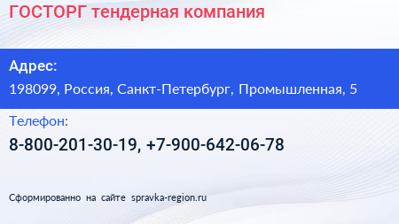ГОСТОРГ, тендерная компания по адресу 198099, Россия, Санкт-Петербург, Промышленная, 5 в дальнейшем Организация, размещена в следующих категориях: