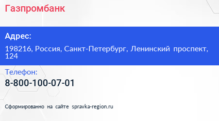 Газпромбанк по адресу 198216, Россия, Санкт-Петербург, Ленинский проспект, 124 в дальнейшем Организация, размещена в следующих категориях: