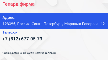 Гепард, фирма по адресу 198095, Россия, Санкт-Петербург, Маршала Говорова, 49 в дальнейшем Организация, размещена в следующих категориях: