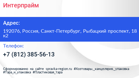 Интерпрайм по адресу 192076, Россия, Санкт-Петербург, Рыбацкий проспект, 18 к2 в дальнейшем Организация, размещена в следующих категориях:
