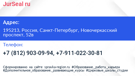 JurSeal.ru по адресу 195213, Россия, Санкт-Петербург, Новочеркасский проспект, 52в в дальнейшем Организация, размещена в следующих категориях: