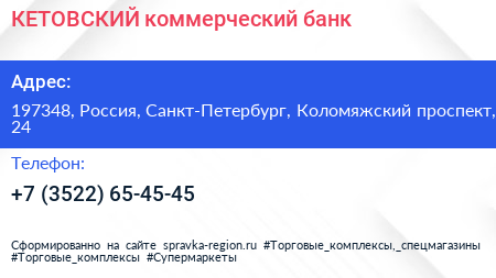 КЕТОВСКИЙ, коммерческий банк по адресу 197348, Россия, Санкт-Петербург, Коломяжский проспект, 24 в дальнейшем Организация, размещена в следующих категориях: