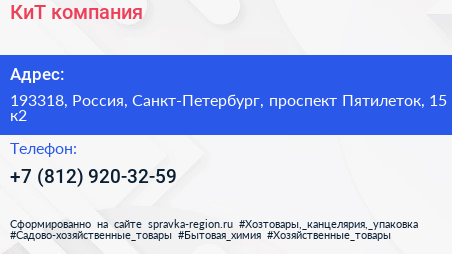 КиТ, компания по адресу 193318, Россия, Санкт-Петербург, проспект Пятилеток, 15 к2 в дальнейшем Организация, размещена в следующих категориях: