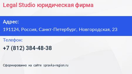 Legal Studio, юридическая фирма по адресу 191124, Россия, Санкт-Петербург, Новгородская, 23 в дальнейшем Организация, размещена в следующих категориях: