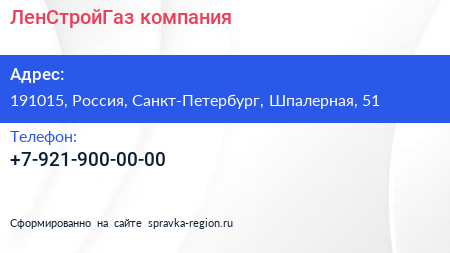 ЛенСтройГаз, компания по адресу 191015, Россия, Санкт-Петербург, Шпалерная, 51 в дальнейшем Организация, размещена в следующих категориях: